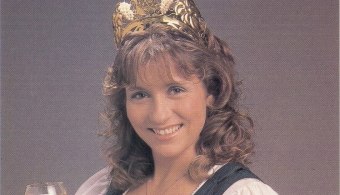 Rheinhessische Weinkönigin 1984 - 1985 met haar wijnprinsessen Dagmar, Edith, Heike en Susanne.