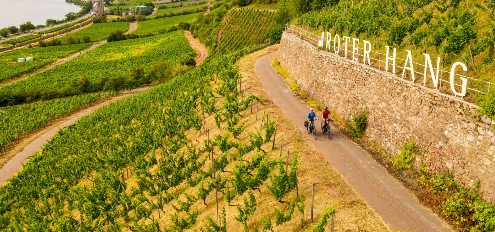 Verken met de fiets de beroemde wijngaard 'Roter Hang' en laat je blik over de Rijn dwalen vanaf de heuvels van Rheinhessen - dit en nog veel meer kun je ervaren tijdens een fietstocht vanuit Nierstein. Laat je betoveren door historische wijn dorpen tijdens de Amiche-Rundfahrt, geniet van het prachtige uitzicht op de Rijn en ontspan na wat kleine klimmetjes aan het begin van de tour in een van de talloze wijnlokalen en wijngastronomieën. Dicht bij de Rijn komen is mogelijk met de RheinWein Tour, die je niet alleen langs de Rijn aan de Rijnland-Palts kant leidt, maar je ook met de Landskrone Rijnveer over de Rijn naar Hessen brengt.