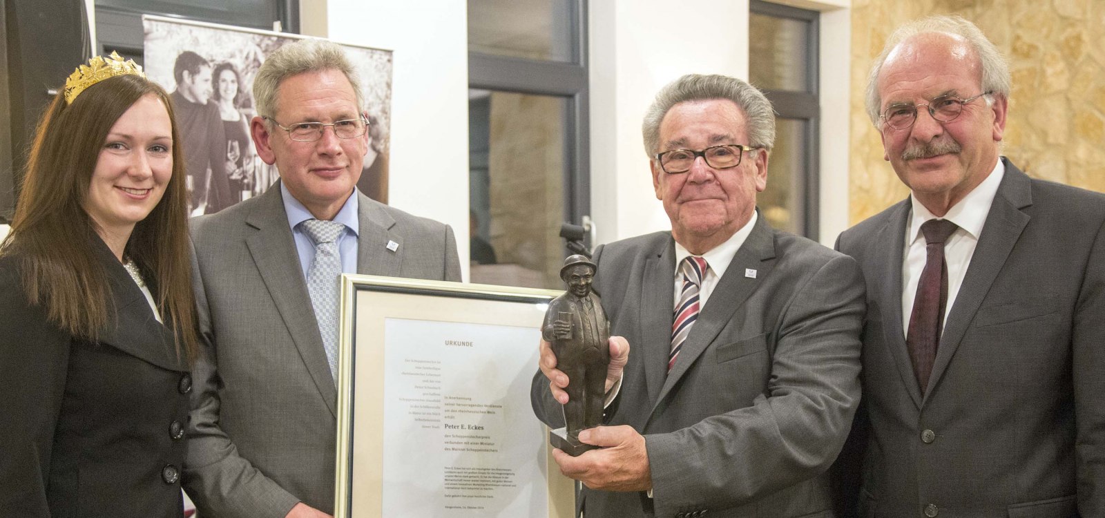 Een miniatuurreplica van een Schoppenstecher-beeld naast het Schönborner Hof in Mainz, gemaakt door Heinz Schaubach. Werd voor het eerst opgericht in 1973 door de stad Mainz en wordt sinds 1983 door Rheinhessenwein eV toegekend voor speciale diensten aan Rheinhessen-wijn.