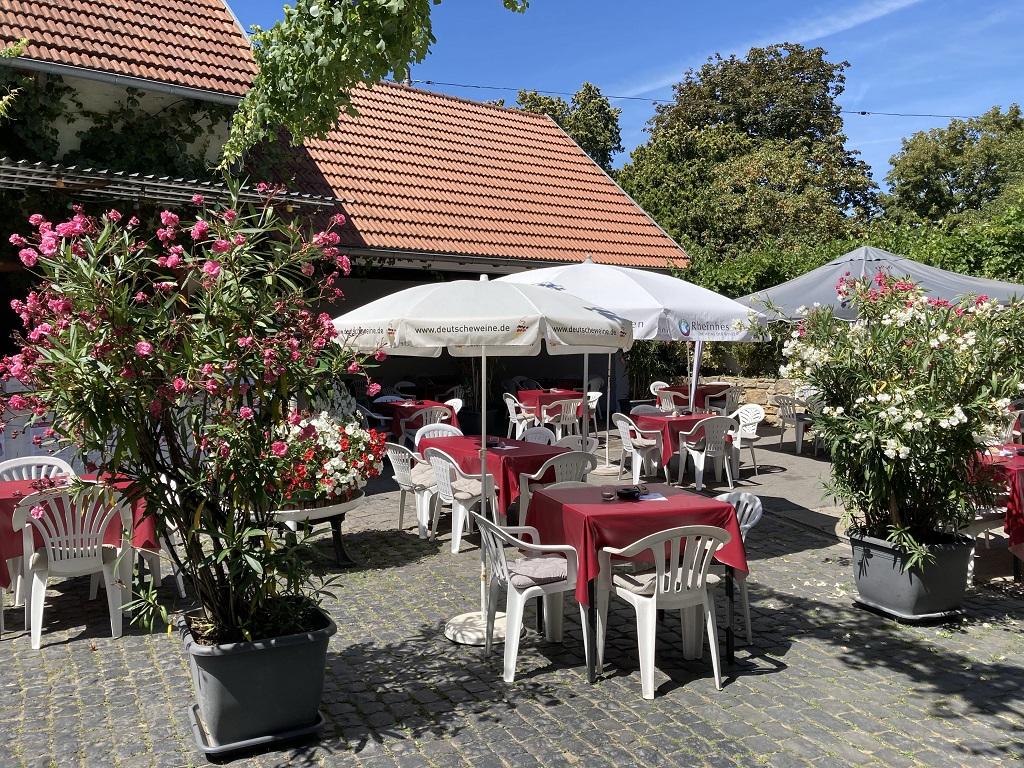 Naast eigen wijnen verwelkomt u een gevarieerd culinair aanbod: Rheinhessische specialiteiten, stevige gerechten en frisse zomerse salades - passend bij het seizoen en in een ontspannen sfeer.