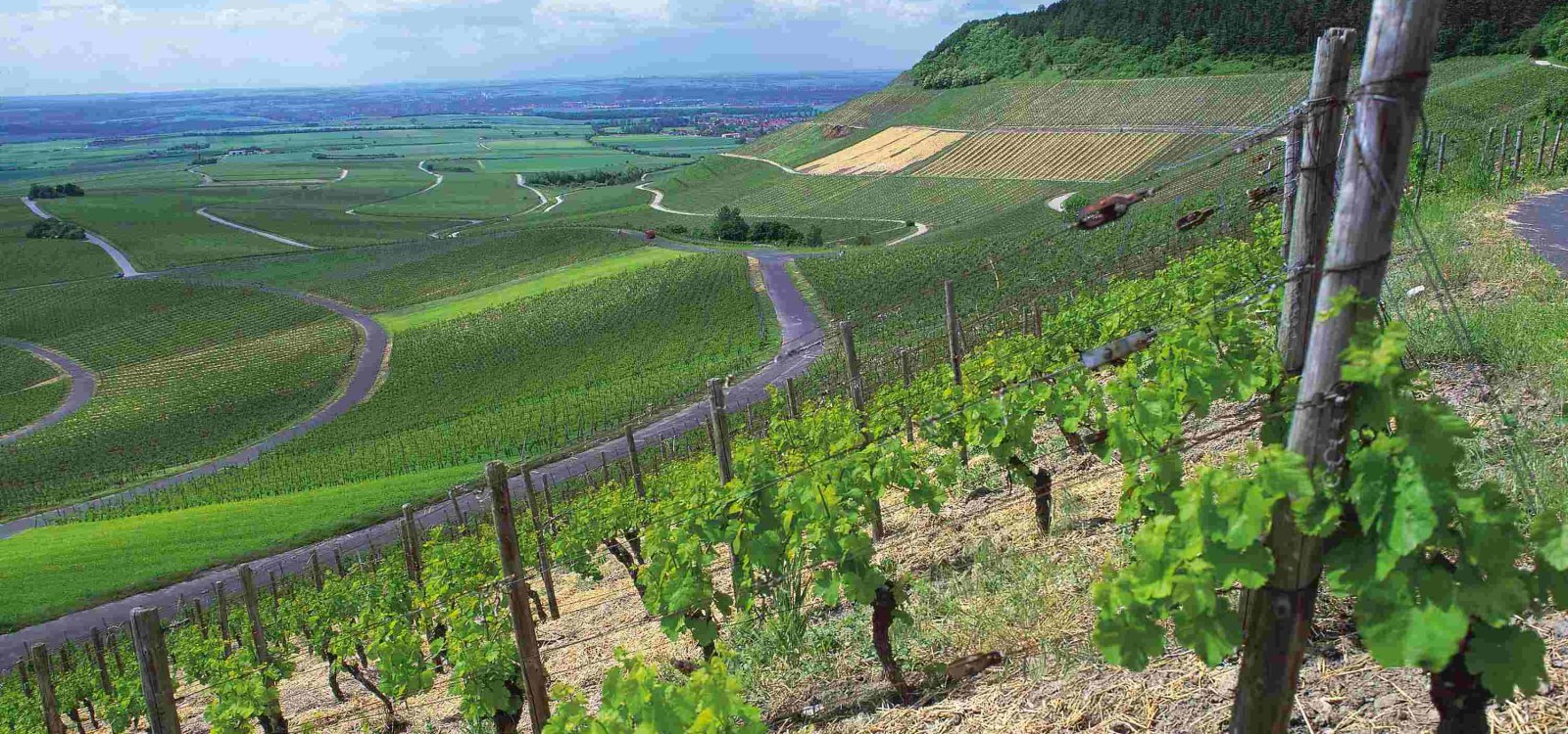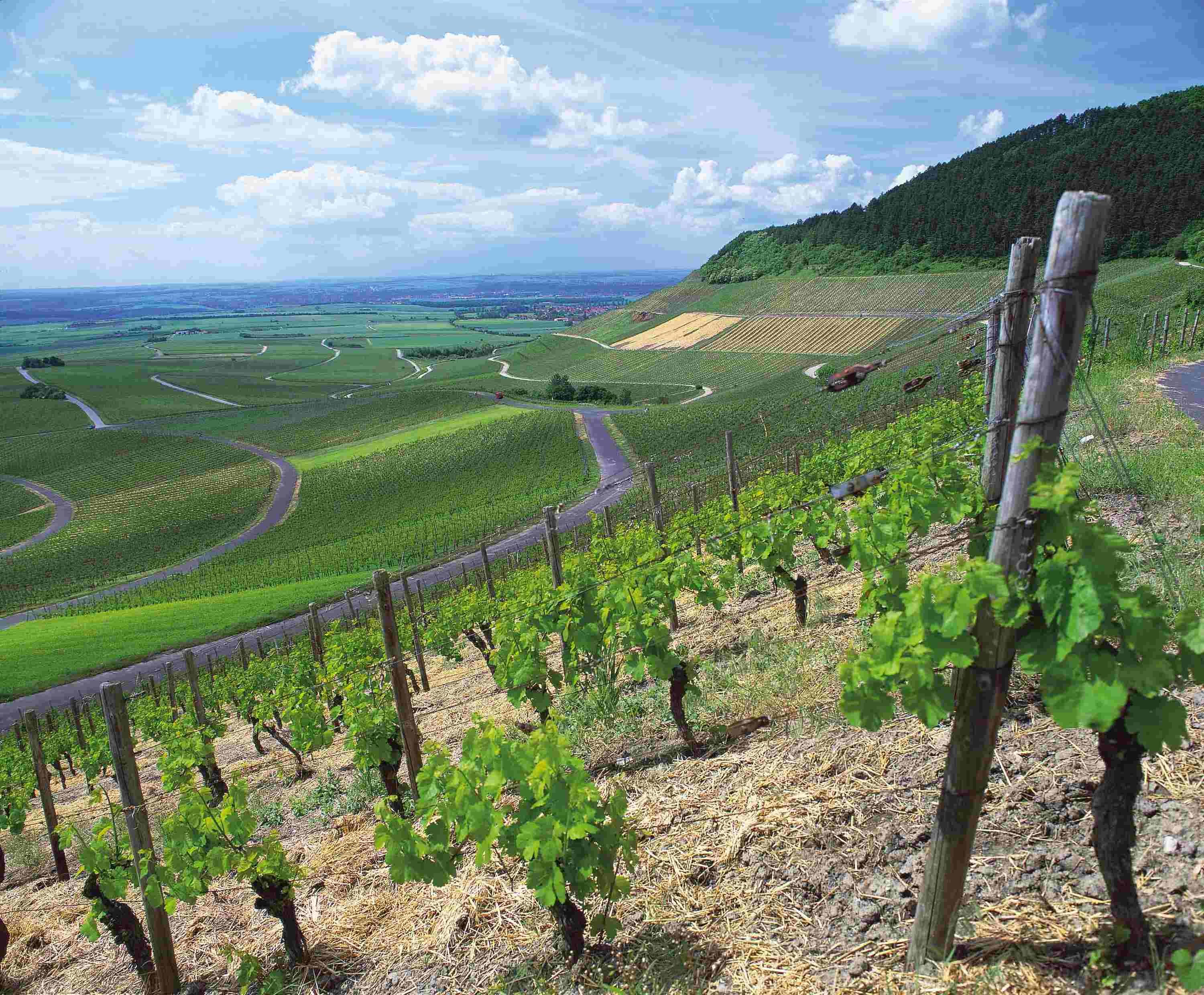 Steunpalen in de wijngaard van hout, metaal (verzinkt staal), kunststof of beton. De draden waaraan de liaanscheuten zijn bevestigd, worden tussen de stokken gespannen.