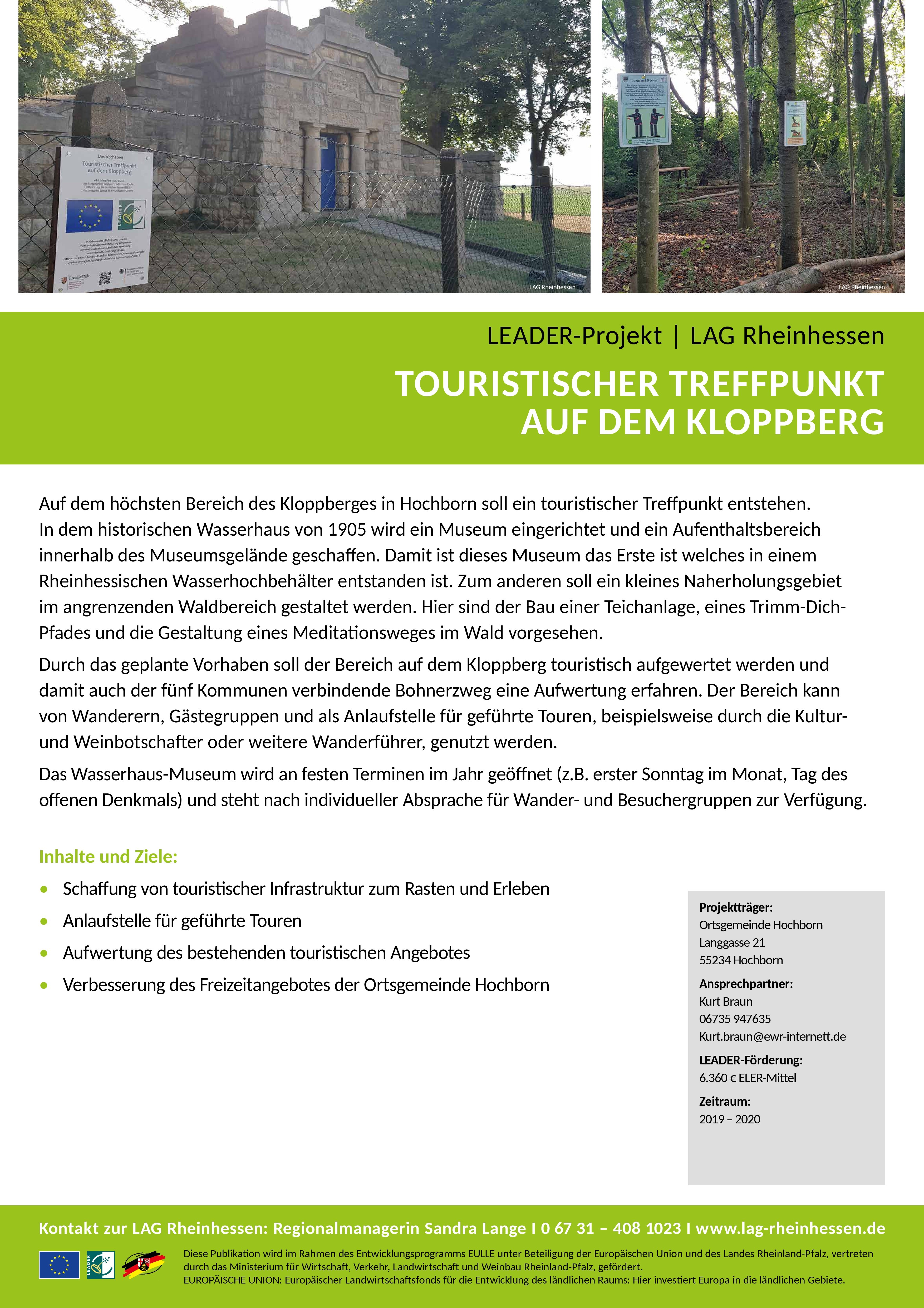 Op het hoogste deel van de Kloppberg in Hochborn moet een toeristisch ontmoetingspunt worden gecreëerd. In het historische waterhuis uit 1905 is een museum gevestigd en op het museumterrein is een loungeruimte gecreëerd. Anderzijds wordt in het aangrenzende bosgebied een klein plaatselijk recreatiegebied ontworpen. Hier staan de aanleg van een vijver, een fitnessparcours en de aanleg van een meditatiepad in het bos gepland.