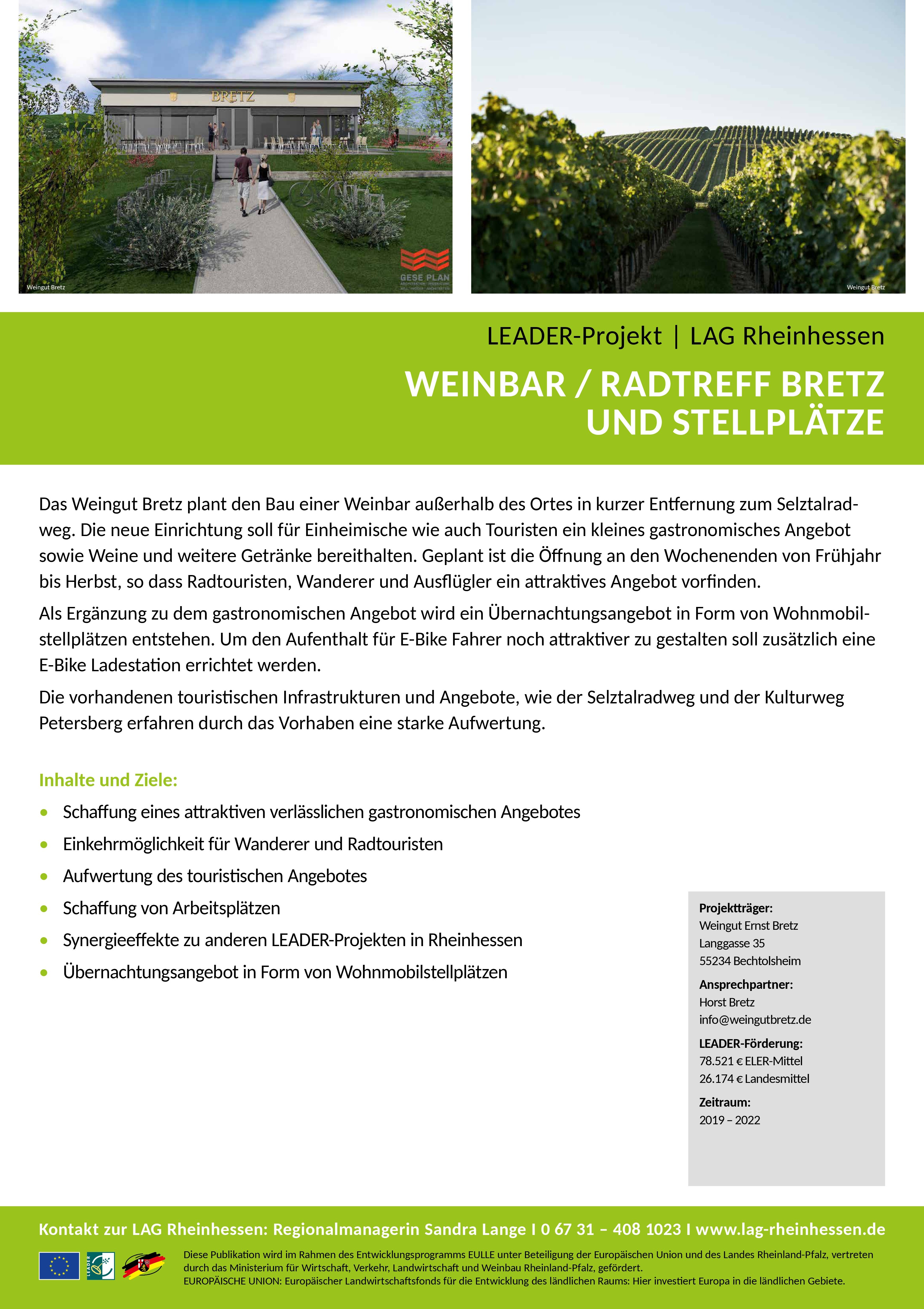 Wijnmakerij Bretz is van plan een wijnbar te bouwen buiten het dorp, op korte afstand van het Selztal-fietspad. De nieuwe faciliteit moet een klein gastronomisch aanbod bieden, evenals wijnen en andere dranken voor zowel de lokale bevolking als toeristen. De opening is gepland in de weekenden van de lente tot de herfst, zodat wielertoeristen, wandelaars en dagjesmensen een aantrekkelijk aanbod vinden.