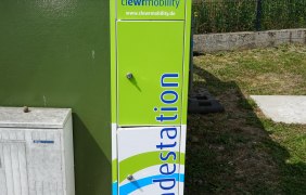 1 E-Bike-Ladestation: 4 Schließfächer mit je zwei geschützten Schuko-Steckdosen sowie einer USB-Ladevorrichtung (gleichzeitige Ladung von Akkus und Handys). Es können 4 Akkus gleichzeitig geladen werden.