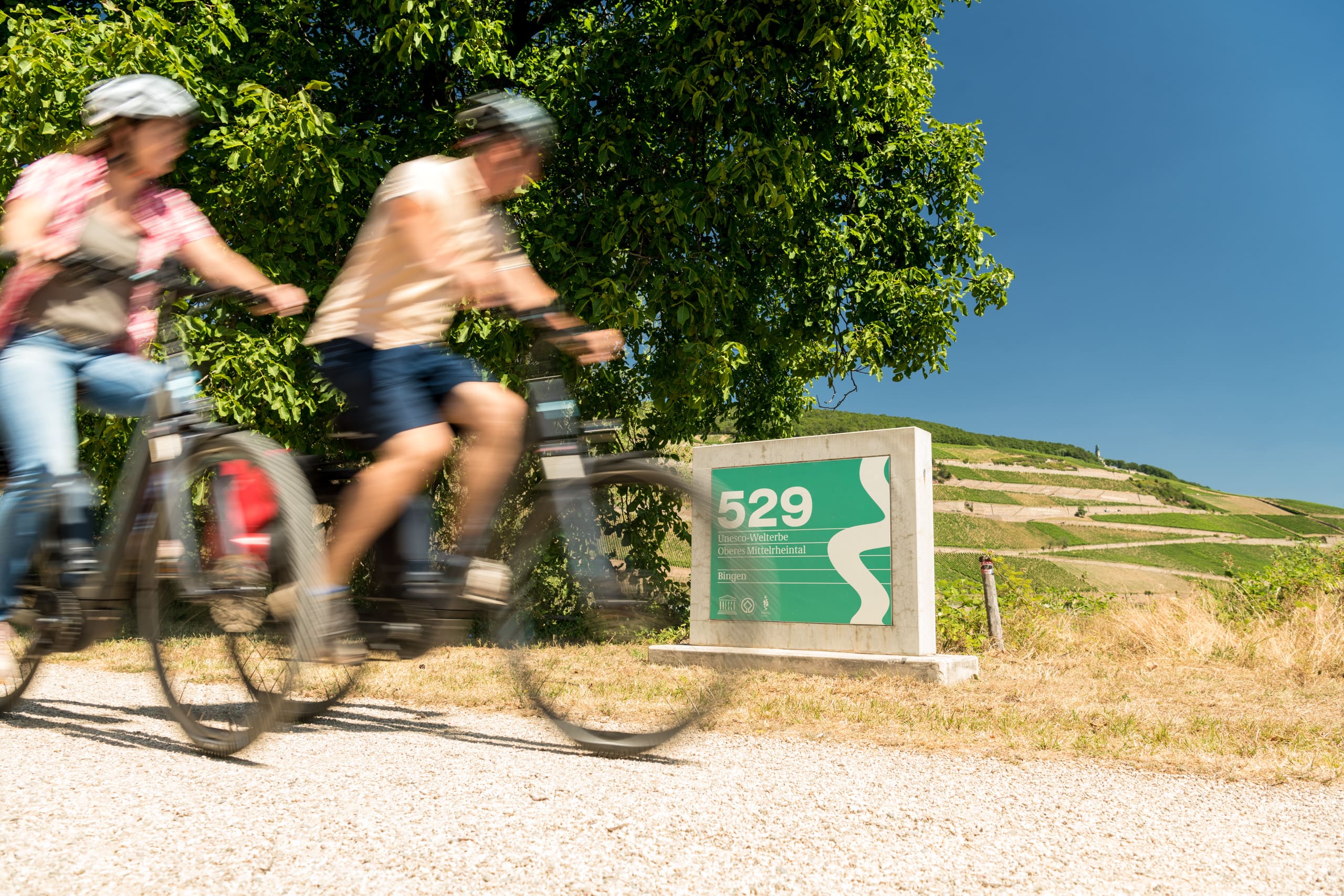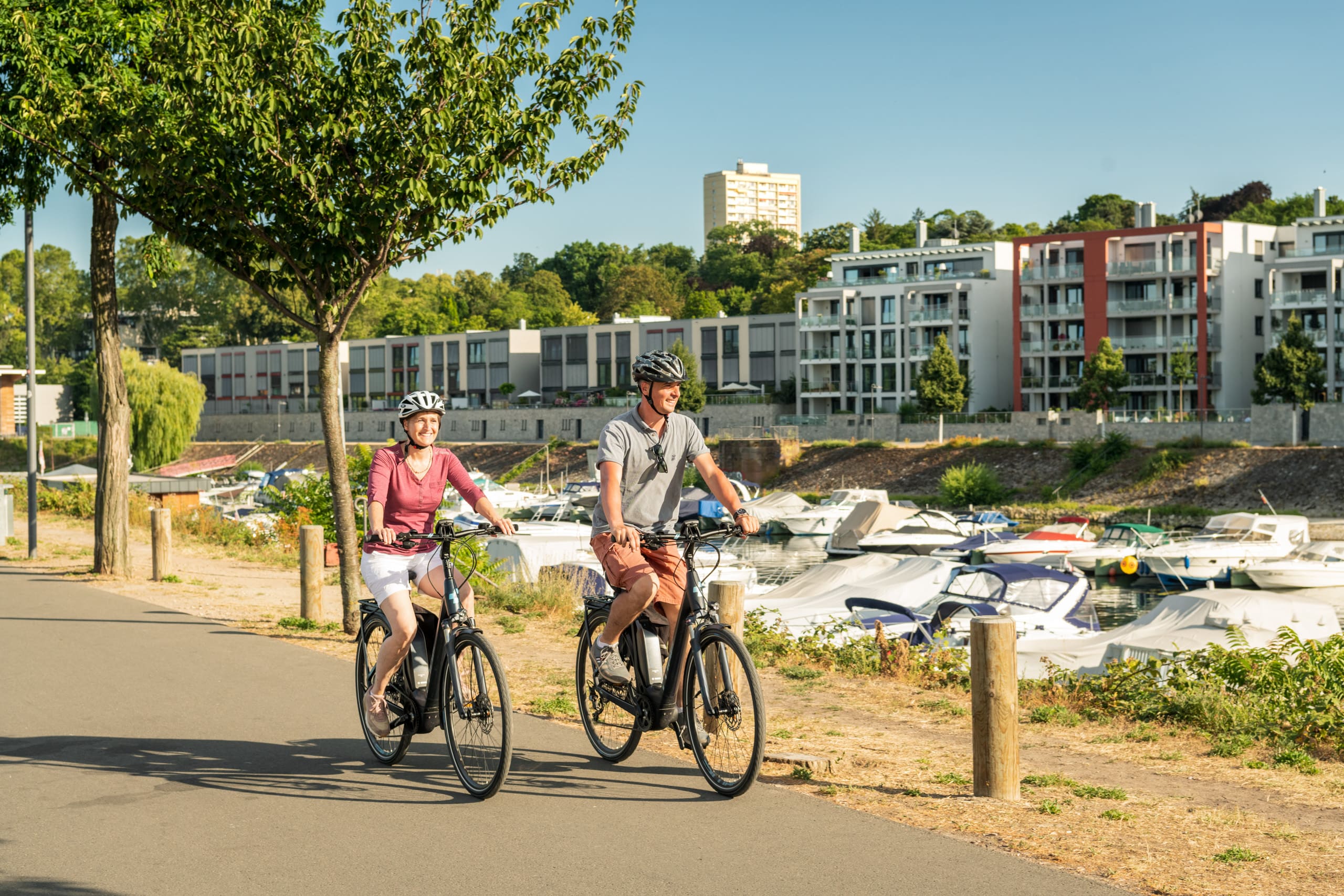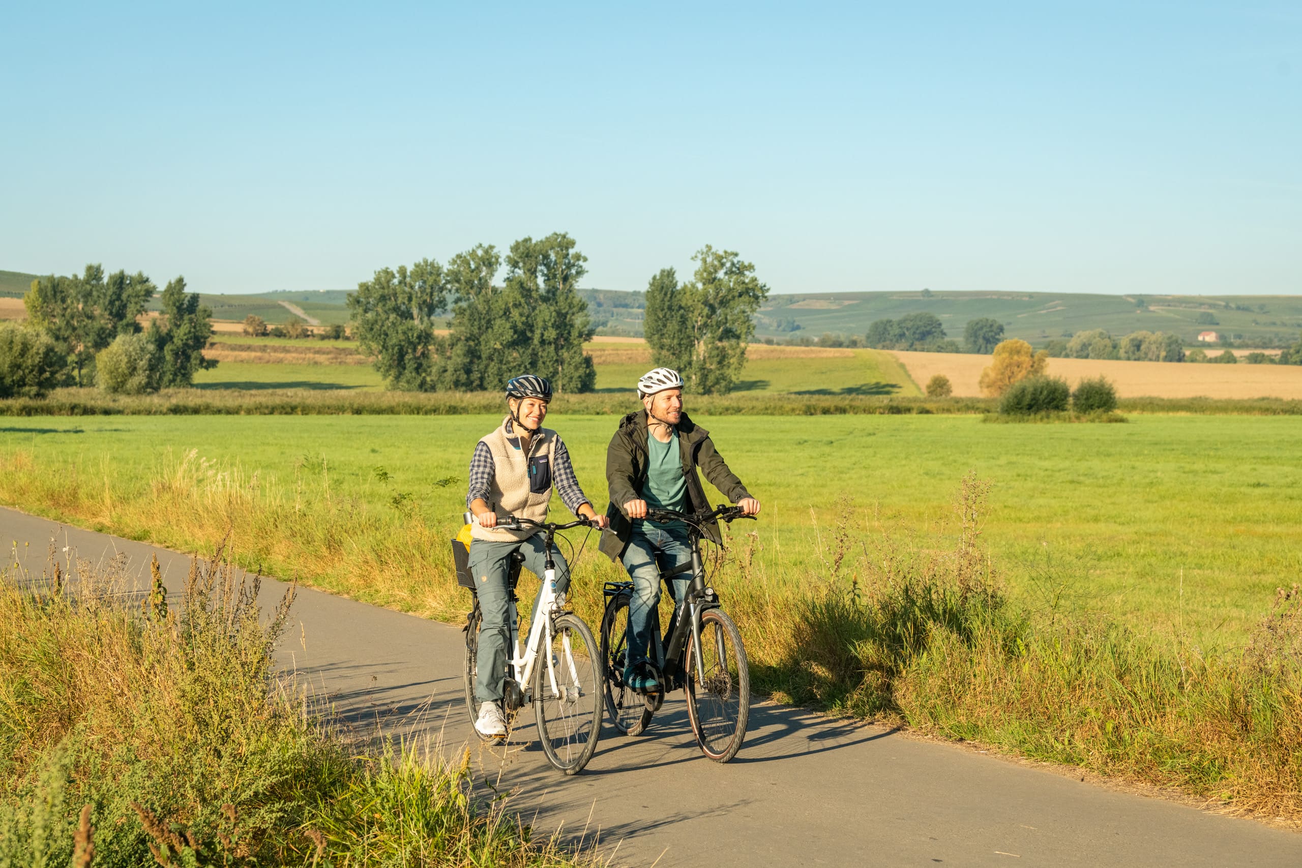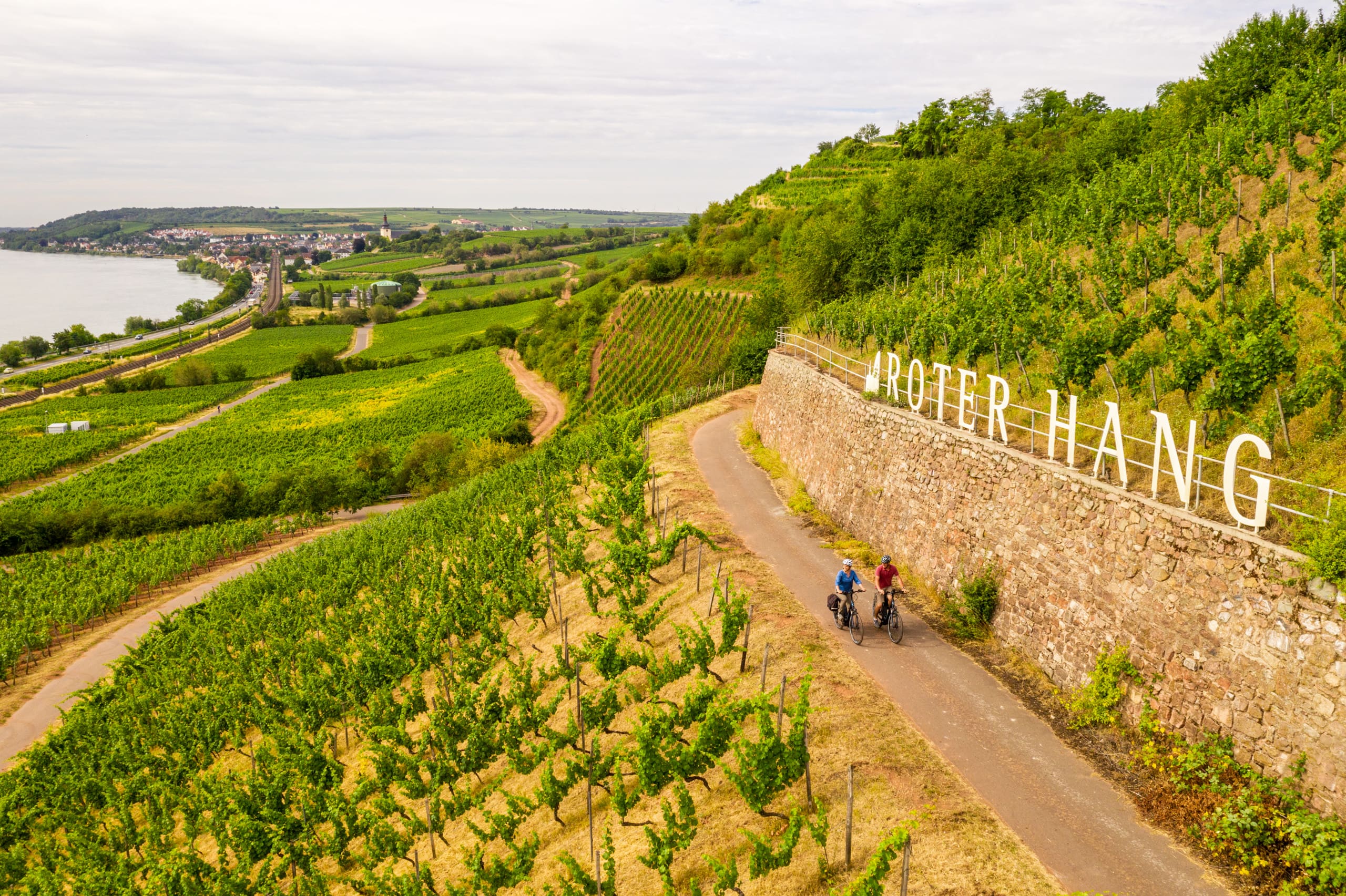 Zwischen Weinbergen, kleinen Weinorten und dem Rhein erlebst du die Region aus ganz unterschiedlichen Perspektiven. Mal rollst du mit Blick über die Reben, mal direkt am Wasser entlang oder erklimmst einen der 1000 Hiwwel der magischen Kulturlandschaft.