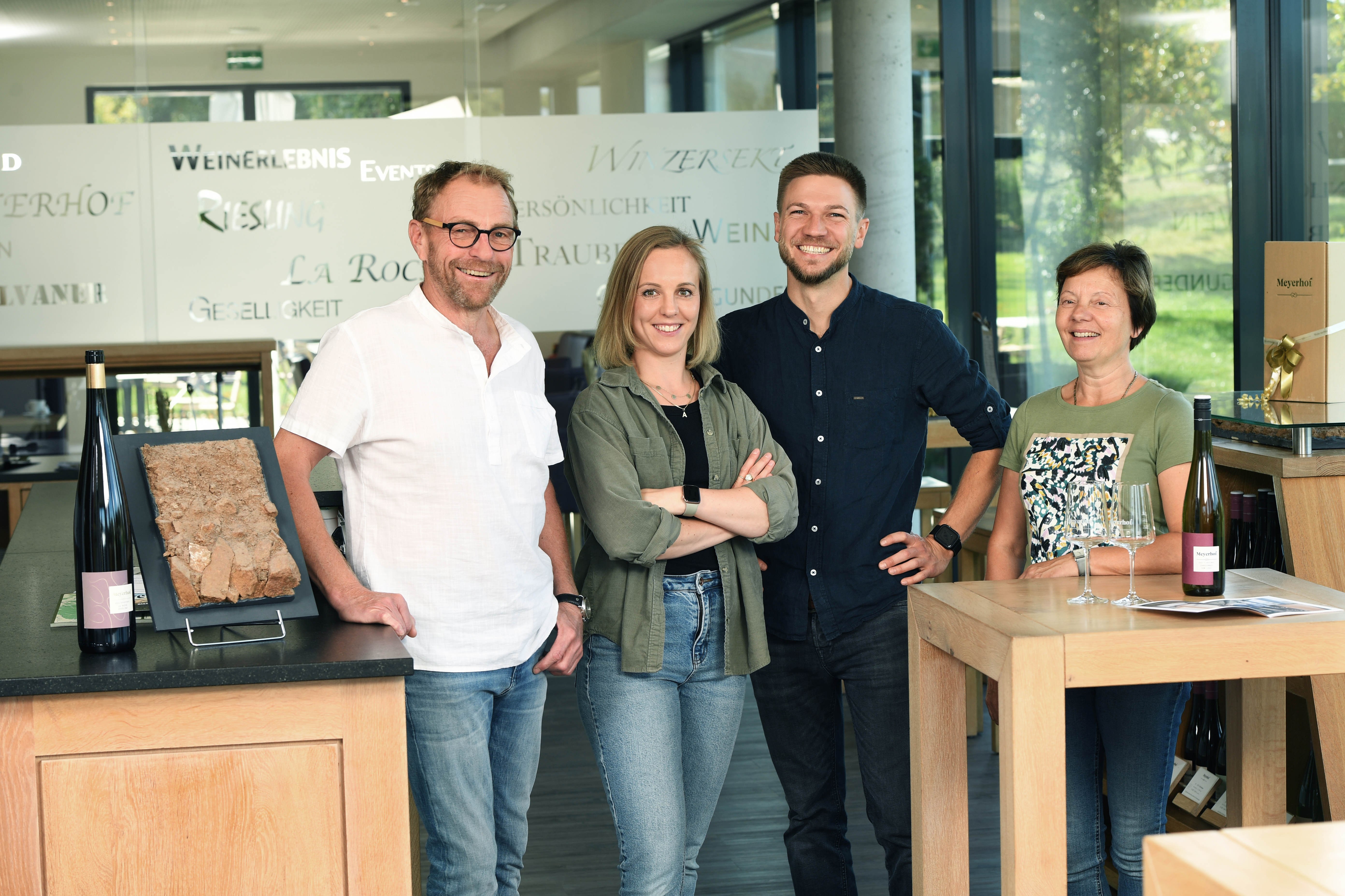 Der Meyerhof ist ein Familienbetrieb. Mit „Weinparadies“ ist die moderne stilsichere Kombination aus Weingut, Vinothek und Gästehaus treffend beschrieben. Die Vinothek öffnet zu verschiedenen Weinevents, meist mit passender kulinarischer Begleitung. Wer den Genuss und die Erholung verlängern möchte, bucht gleich die Übernachtung im Gästehaus mit dazu. Die familiäre Gastfreundschaft findet sich auch in ausgewählten Rahmenprogrammen und Arrangements wieder, die eines zum Ziel haben – mehr als das Erwartbare zu bieten, nämlich das WeinERLEBNIS.