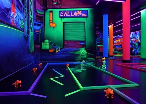 Das Prinzip der Schwarzlichthelden in Mainz ist bekannt und gleichzeitig ganz neu: Der Ball muss mit möglichst wenigen Schlägen ins Loch. Schwarzlicht, Neonlichter und eindrucksvolle 3D-Effekte lassen Euch dabei in eine wundersame Welt abtauchen. Und vielleicht hat der Regen aufgehört, wenn Ihr wieder im Hellen auftaucht.