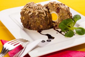 Eine Spezialität in Rheinhessen, schmeckt am besten zu leichten Rotweinen . Hasenfleisch, Schweinebauch, Essig, Zwiebeln, Roggenbrot, verschiedene Gewürze und Rotwein in einen Tontopf geben. Nach Fertigstellung mit Rotkraut und Kartoffelklößen servieren.