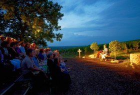 Der »Fröhliche Weinberg« ist ein Lustspiel des rheinhessischen Dramatikers Carl Zuckmayer. Naturalistische, deftig-farbige Darstellung rheinhessischer Gestalten, Redensarten, Volkslieder und Gebräuche. »Das Stück spielt in Rheinhessen, im Weinherbst Anno einundzwanzig. Es beginnt am Spätnachmittag und endet in der zweiten Morgenfrühe« (Regieanweisung des Autors).