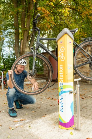 Auch wenn man mittlerweile durch die Ruhe und Schlichtheit der Landschaft völlig im Selztal-Flow ist, sollte man an Jordans Untermühle in Köngernheim eine Pause einlegen. Nicht nur, um sein Rad an einer der rheinhessischen RadServiceStationen aufzupumpen oder sein E-Bike zu laden. Beim Blick in den Innenhof der alten Fachwerkmühle ist man schnell ver-sucht, einen kleinen Imbiss auf der herrlichen Außerterrasse zu genießen. Unser Tipp für die volle Dosis Entschleunigung: Einchecken ins familiengeführte Land- und Wellnesshotel und eine Nacht bleiben.