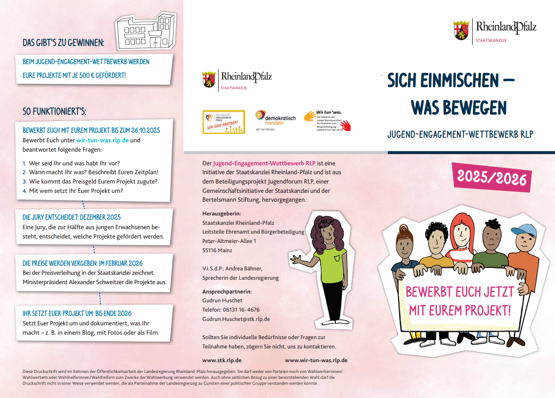 Mehr Infos unter: https://wir-tun-was.rlp.de/anerkennen/jugend-engagement-wettbewerb