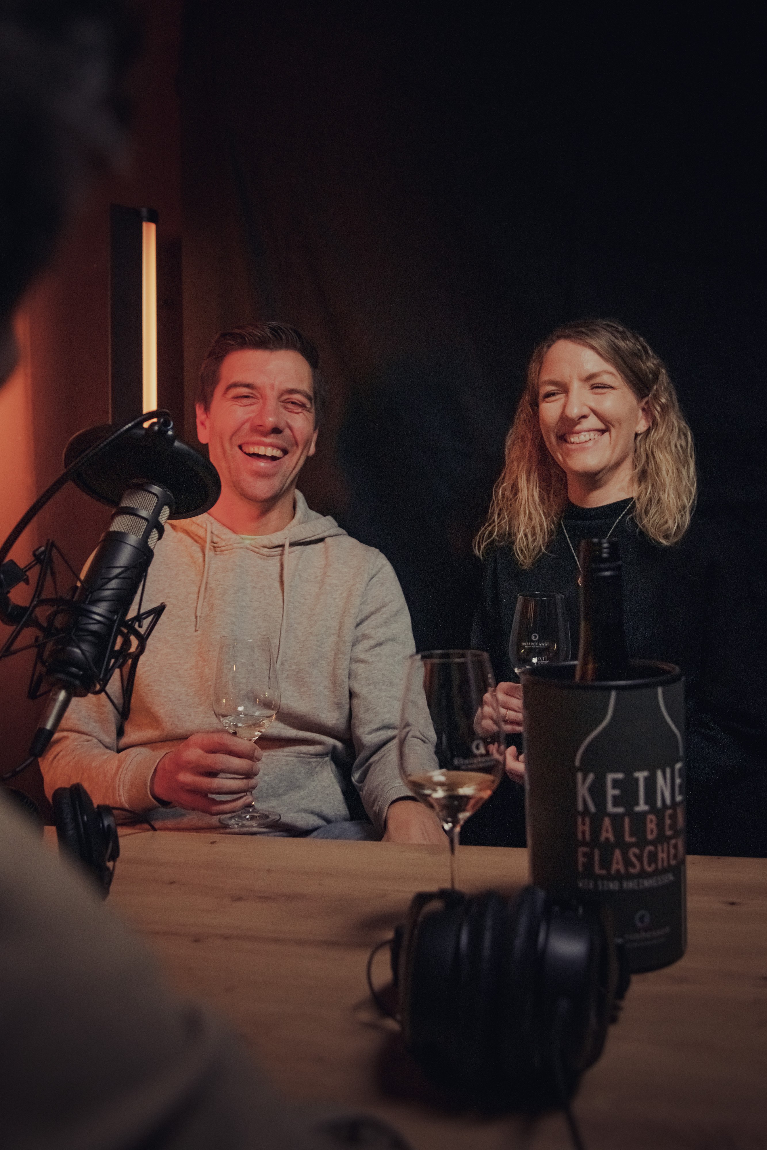 Julia Kappler von der Werbe-Agentur Schoenski und Weinbau-Lehrer Matthias Gutzler berichten davon, wie die Fachschüler der Weinbauschulen in Oppenheim und Bad Kreuznach gemeinsam eine Weinmarke entwickeln.