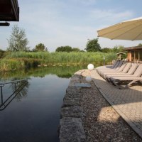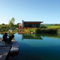 Im Außenbereich der Saunawelt befinden sich gleich fünf unterschiedliche Saunen. Hier sorgt der naturnah gestaltete Badeteich, in dem die Besucher ihre Runden drehen können, für Abkühlung. Einmalig ist die Weinkellersauna: Mit Naturmaterialien gemauertes Tonnengewölbe und original Weinfässer sorgen für ein Erlebnis wie beim Winzer. Das Kelo-Saunahaus bietet allen ein besonderes Sauna-Erlebnis, darüber hinaus erwarten die Besucher eine 100-Grad Aufguss-Sauna, eine 85-Grad Panorama-Sauna sowie eine 70-Grad Meditations-Sauna.