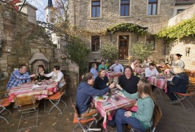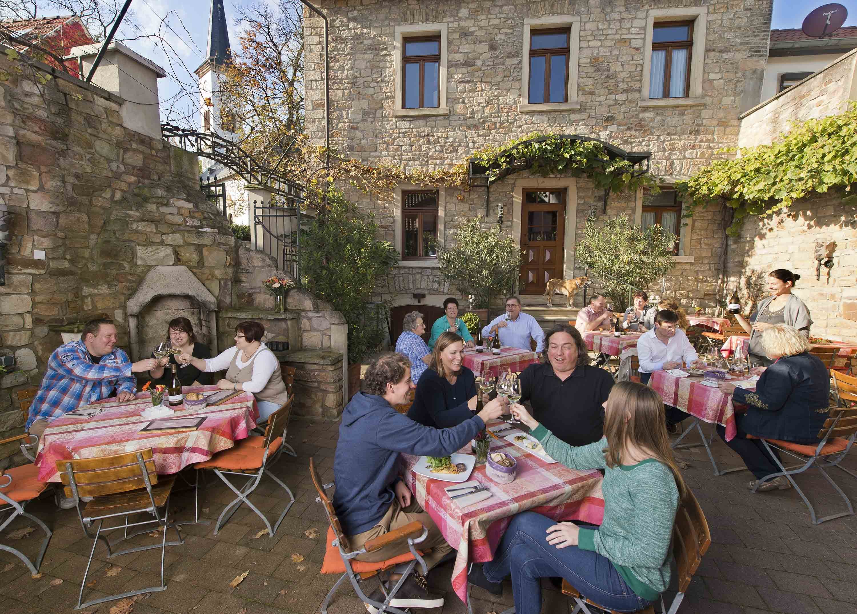 In rheinhessischen Straußwirtschaften schenkt der Winzer selbst erzeugten Wein aus. Dies darf er nach vorheriger Anzeige höchstens an vier zusammenhängenden Monaten im Jahr, die auch in zwei zusammenhängende Zeitabschnitte aufgeteilt werden dürfen. Es dürfen nur einfach zubereitete Speisen verabreicht werden (Spezialitäten zum Wein). Ein solcher Ausschank ist meistens durch einen Kranz, Strauß oder ein ähnliches Zeichen und eine Tafel erkennbar gemacht. Ihr Alter ist ungewiss. Bei Publius Syrus findet sich um 45 v. Chr. eine Erwähnung solcher Schankstätten selbsterzeugten Weines. In Rheinhessen wird Karl der Große gerne als ihr Begründer angesehen.