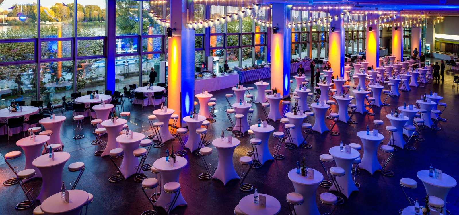 Das nicht öffentliche Restaurant kann z.B. als Buffetfläche für Großveranstaltungen im Großen Saal oder als Empfangs- und Cateringbereich bei kleineren Tagungen im Spiegelsaal genutzt werden.