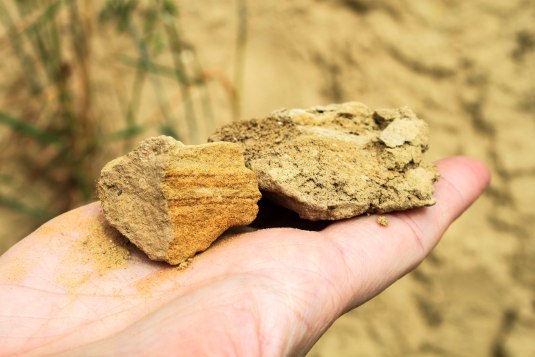 Dieser rote Boden enthält reichlich Mineralien, darunter Eisenoxid, das ihm die typische rote Farbe und eine leicht salzige Mineralität verleiht. Die Eisenverbindungen beeinflussen das Aroma und die Struktur der Weine und tragen zu einer deutlichen Mineralität und einer feinen Würze bei. Die Mineralität ist oft fein, begleitet von Kräuter- und Blütenaromen sowie von fruchtigen Tönen wie Pfirsich und Aprikose. Tonsandstein speichert Wärme gut, was die Reifung der Trauben begünstigt und oft kräftige, vielschichtige Weine mit einem ausgeprägten Geschmacksprofil hervorbringt.