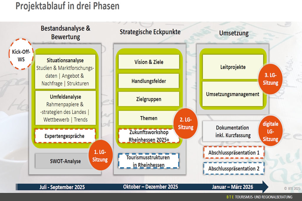 Die Rheinhessen-Touristik GmbH hat das Beratungsunternehmen BTE Tourismus- und Regionalentwicklung mit der fachlichen Begleitung der Fortschreibung der Tourismusstrategie Rheinhessen 2030+ beauftragt. Dieses strategisch bedeutende Projekt wird durch das Förderprogramm „Transformation der Tourismusregionen Rheinland-Pfalz“ unterstützt.