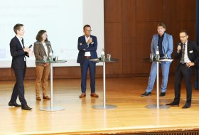 Die Teilnehmer*innen der Podiumsdiskussion waren sich in vielen Punkten einig. Die Herausforderung ist nur mit Vernetzung und Professionalisierung zu schaffen. Landrat Heiko Sippel ging noch einen Schritt weiter und forderte die Abkehr von lokalen Kirchturmdenken und Zusammenarbeit. Mehr und schnellere Fortschritte bei der Technologie mahnten die beiden Wissenschaftler, Prof. Dr, Eberhard Kurz und Prof. Dr. Henning Kehr von der Hochschule Worms, an. Breitbandausbau und freies WLAN sollten keine Zukunftsmusik mehr sein. Den Ball nahm Ute Meinhard vom Wirtschaftsministerium auf und erläuterte die Strategie des Landes und die vielfältigen Fördermöglichkeiten.