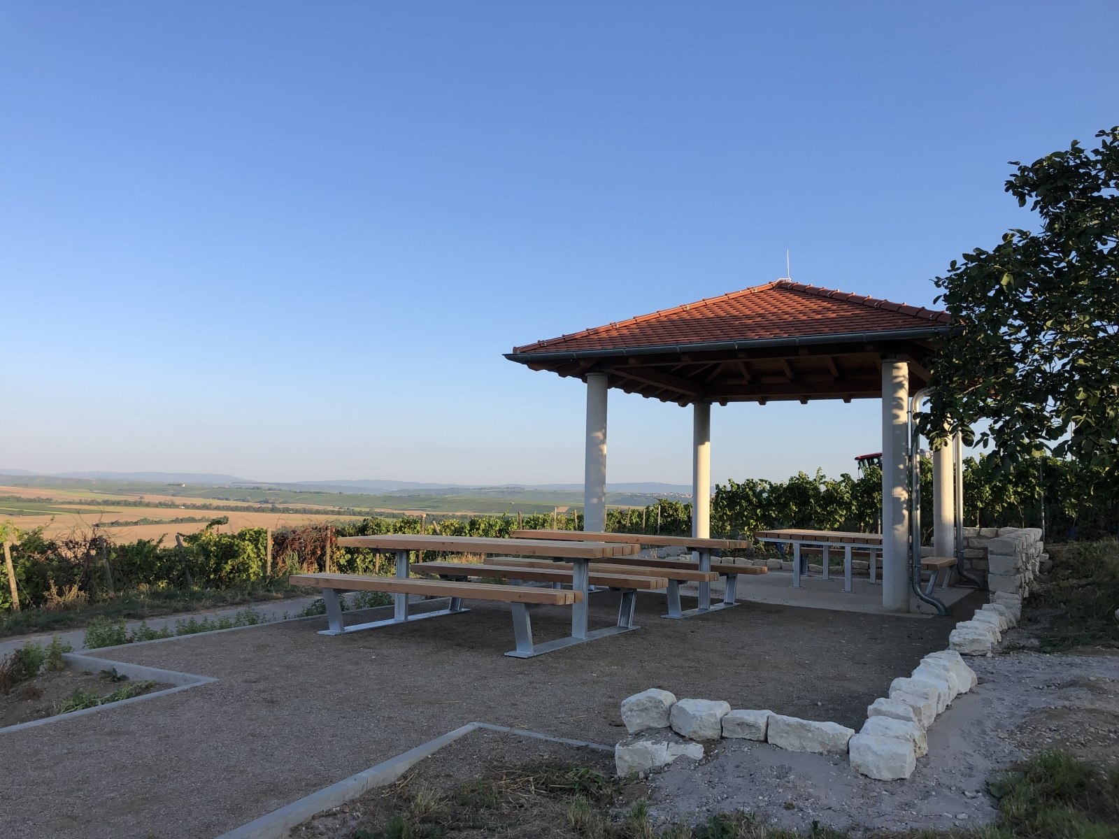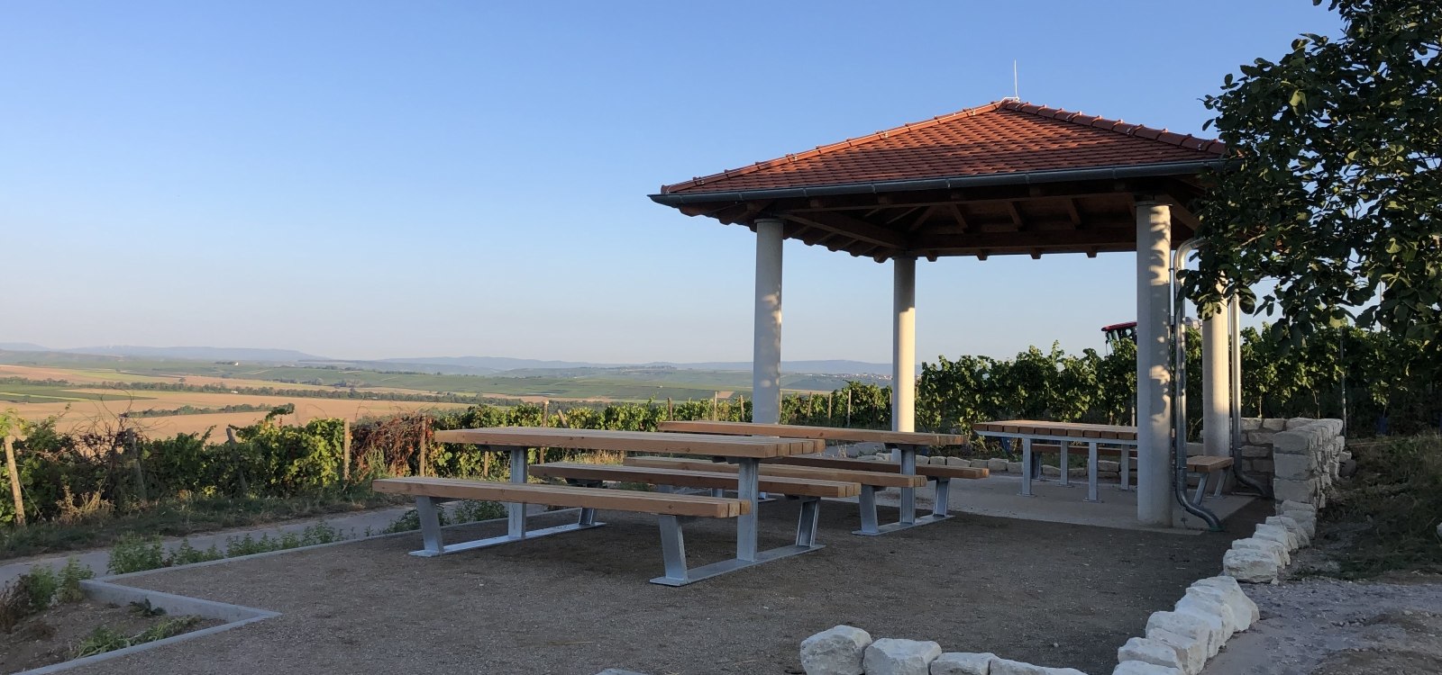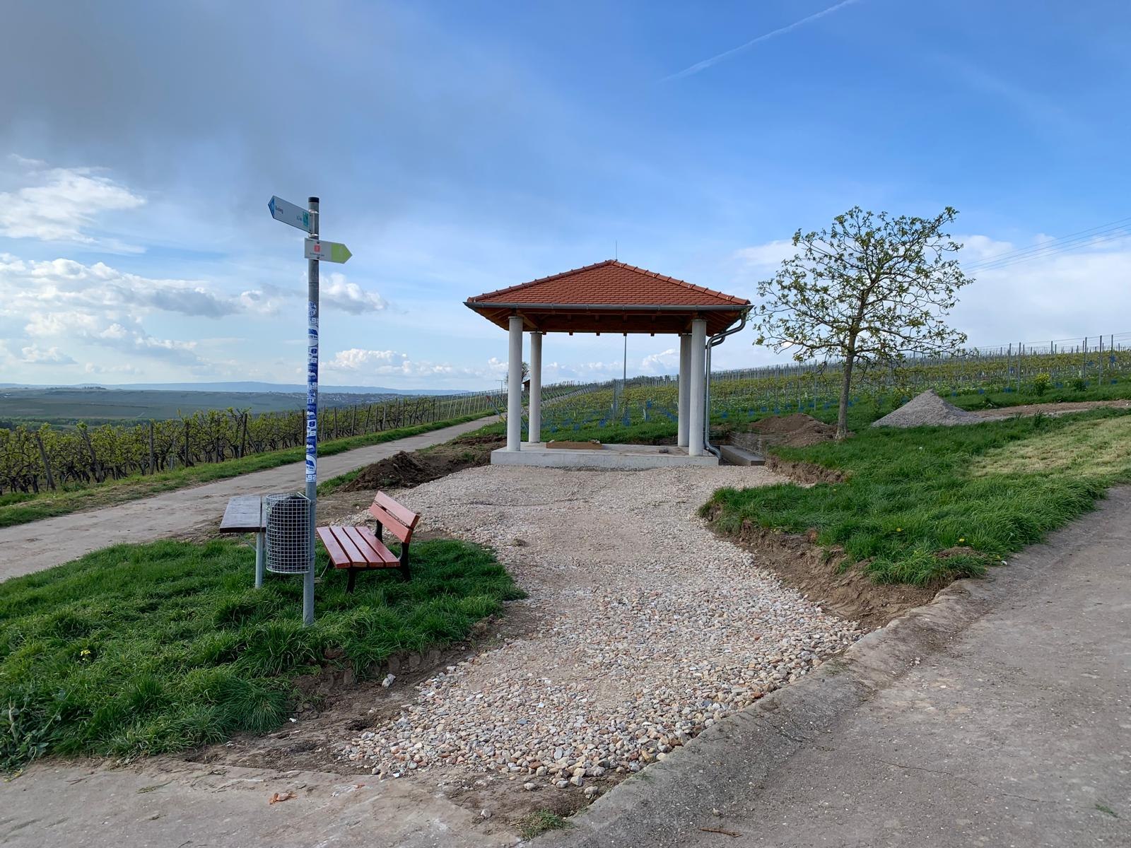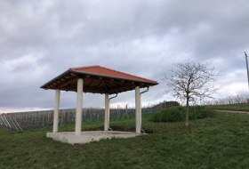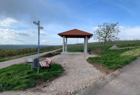 Überdachtes "Wingert Häuschen" mit Sitzgelegenheiten für Wanderer