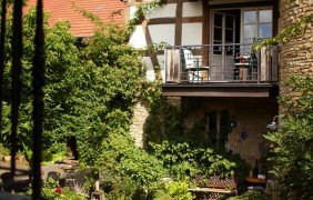 Genießen Sie die Atmosphäre des alten Bauern- und Winzerhofes, der bruchsteingemauerten, begrünten Hofreite, im rheinhessischen Ober-Hilbersheim.