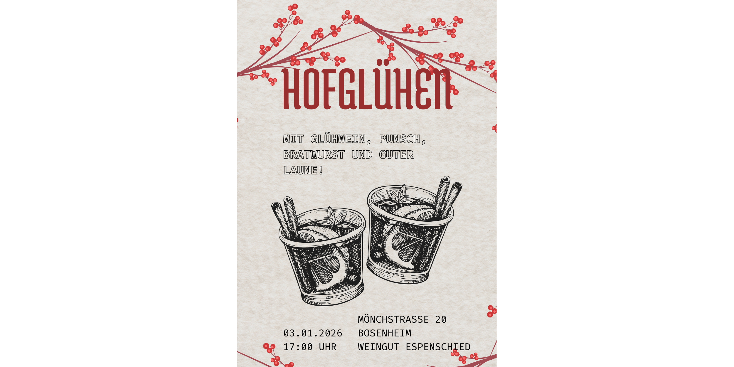 Am 1. Samstag im  Jahr begrüßen wir mit unserem HofGlühen das neue Jahr!