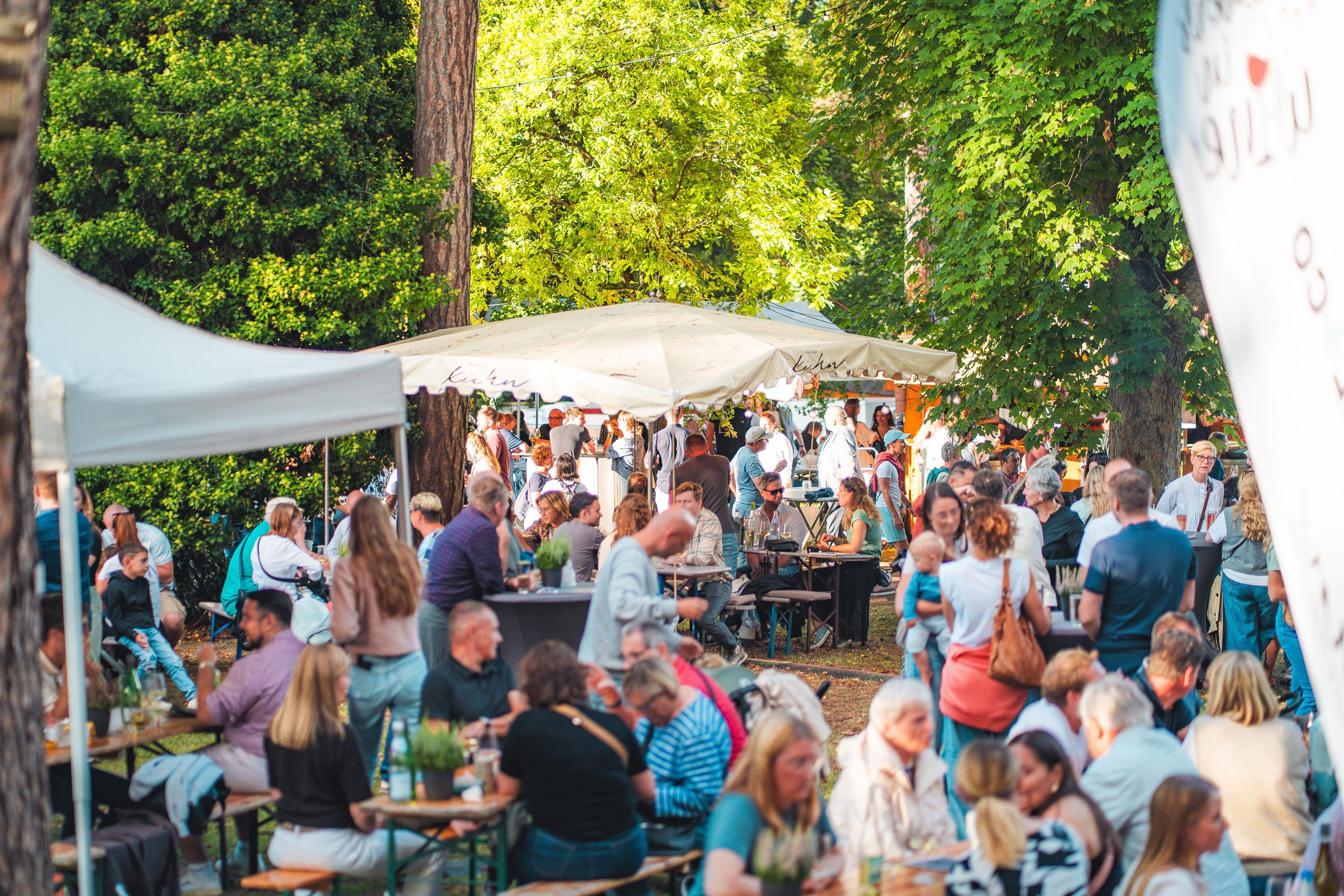 Ende August und Anfang September wird der Mainzer Stadtpark traditionell zur ersten Anlaufstelle für alle Weinfreunde in Rheinhessen und darüber hinaus. Denn an diesen Wochenenden bildet die großzügige Grünanlage mit Rosengarten die romantische Kulisse für das größte Mainzer Weinfest. Etwa 100 Aussteller:innen begrüßen die rund 300.000 Besucherinnen und Besucher in der rheinland-pfälzischen Landeshauptstadt.