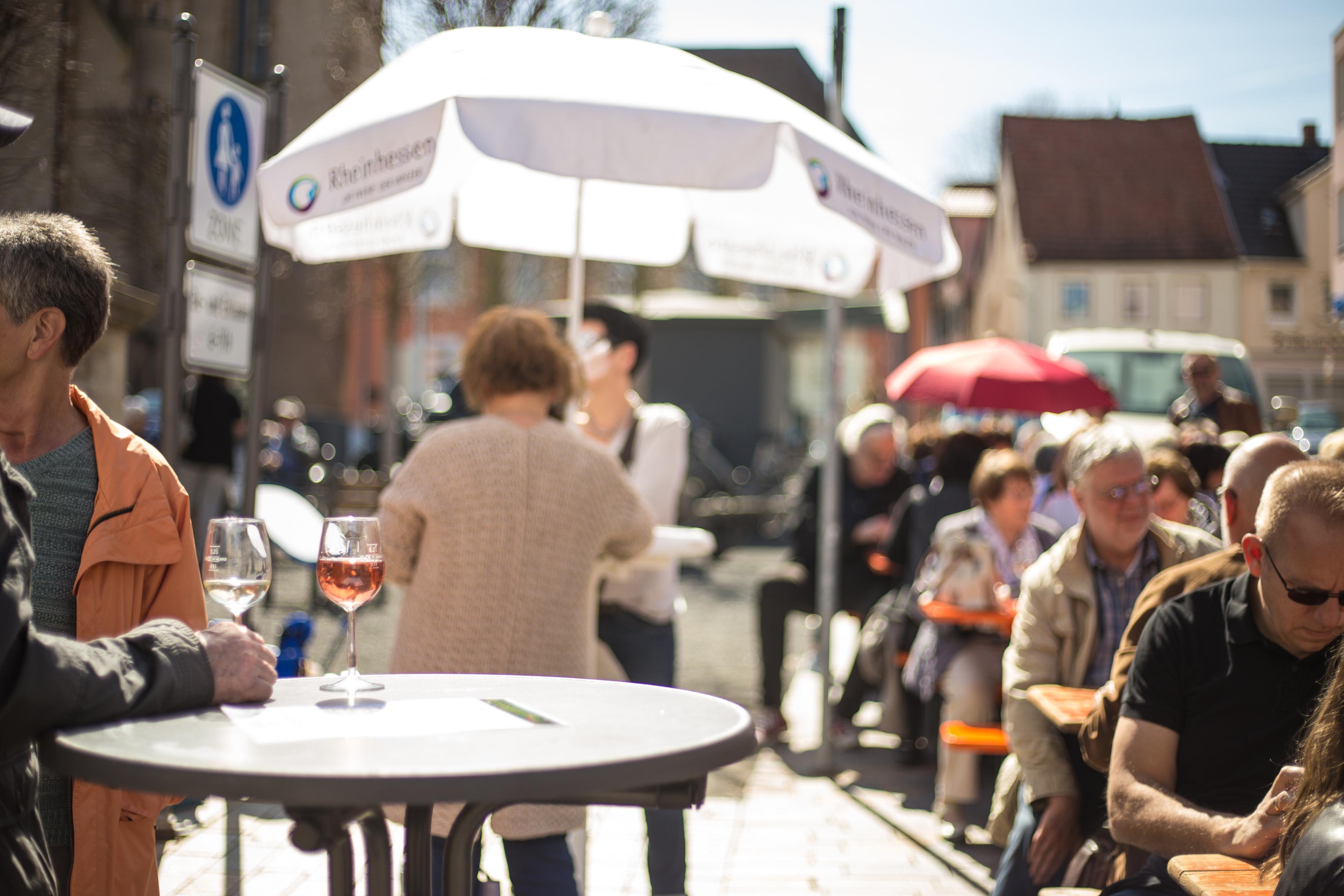 Wochenmarkt mit Weinausschank, spezielles Markt-Event-Programm.