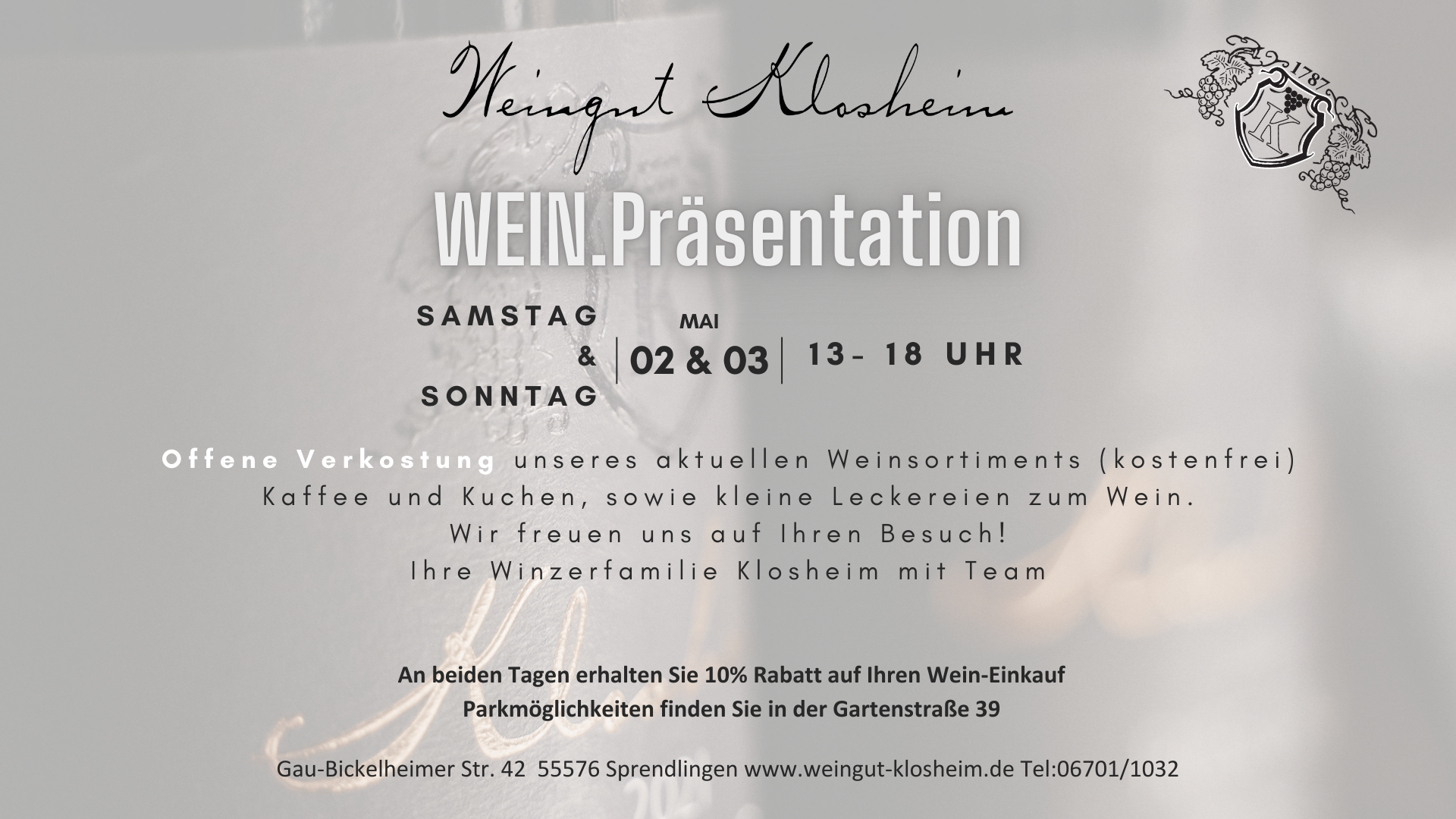 am 02. & &3. Mai ist es wieder soweit, jeweils von 13-18 Uhr laden wir Sie zur offenen Verkostung des aktuellen Sortiments ein.