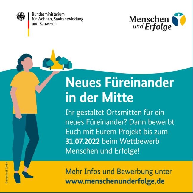 Wettbewerb "Menschen und Erfolge"-Neues Füreinander in der Mitte - Interessenaufruf für lebenswerte Stadt- und Ortsmitten