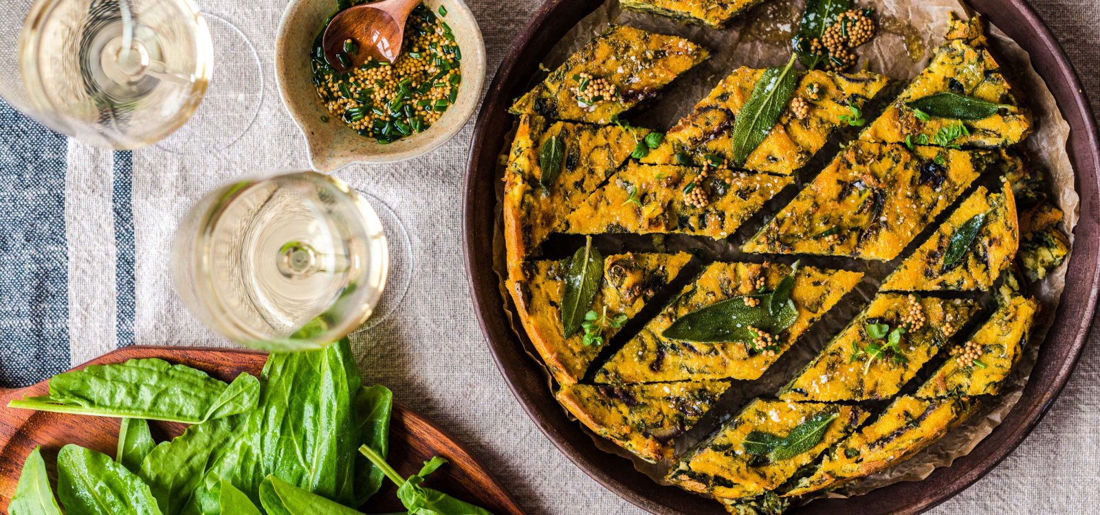 Der Parmesan macht die Polenta, die im Backofen knusprig gebacken wird, wunderbar deftig. Dazu empfehlen wir einen Müller-Thurgau aus Rheinhessen.