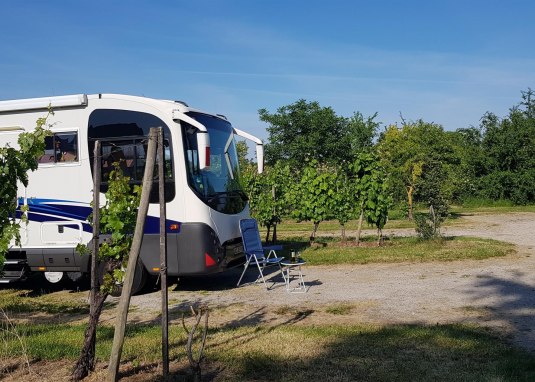 Der Reisemobilstellplatz gehört zum Weingut Huppert, welcher nur 300 Meter entfernt liegt. Er verfügt über eine Stromversorgung (3,00 EUR) und Ver- und Entsorgungsmöglichkeiten.