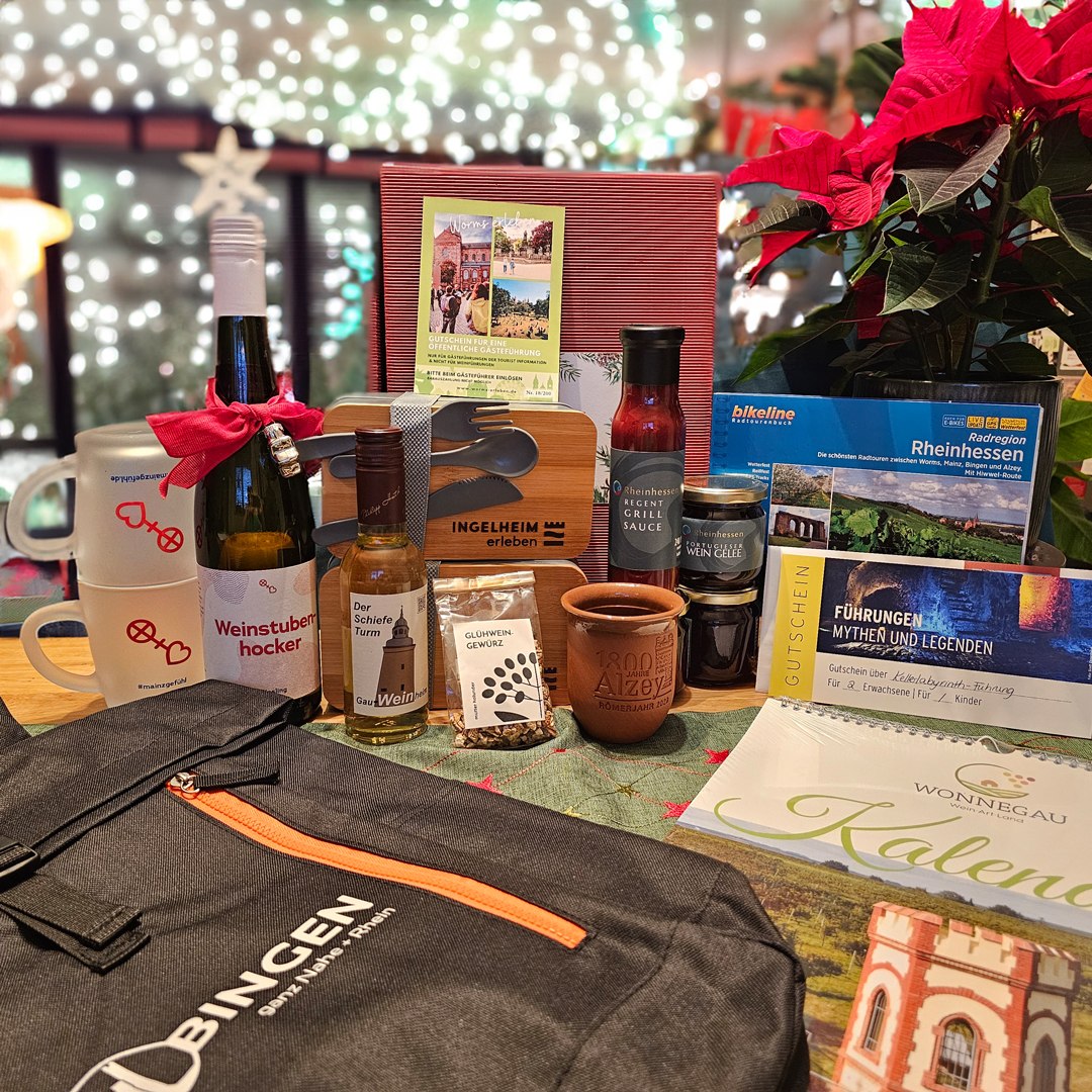 Tourist Information Ingelheim: 1 Lunchbox inklusive Besteck und zwei EbenenTourist Information Rheinhessen Mitte: 1 Wein (0,25l) Weissburgunder "Der Schiefe Turm Gau-Weinheim"Rheinhessen-Touristik GmbH: wasserfestes Radtourenbuch Rheinhessen von bikelineTourist Information Alzey: Tonbecher "1800 Jahre Alzey"Tourist Information Worms: Gutschein für öffentliche Gästeführungen für 2 Pers.Tourist Information Bingen: Bingen-RucksackTourist Information Mainz: #mainzgefühl-Glühweinpaket (1x Weinstubenhocker-Wein, Glühweingewürz, 2 Mainzgefühltassen)Rheinhessenwein e.V.: 1x Grillsauce Regent, 1x Portugieser Wein GeleeTourist Information Wonnegau: Wonnegau-Kalender 2024Tourist Information Oppenheim: Gutschein für 2 Erwachsene für eine Kellerlabyrinth-Führung
